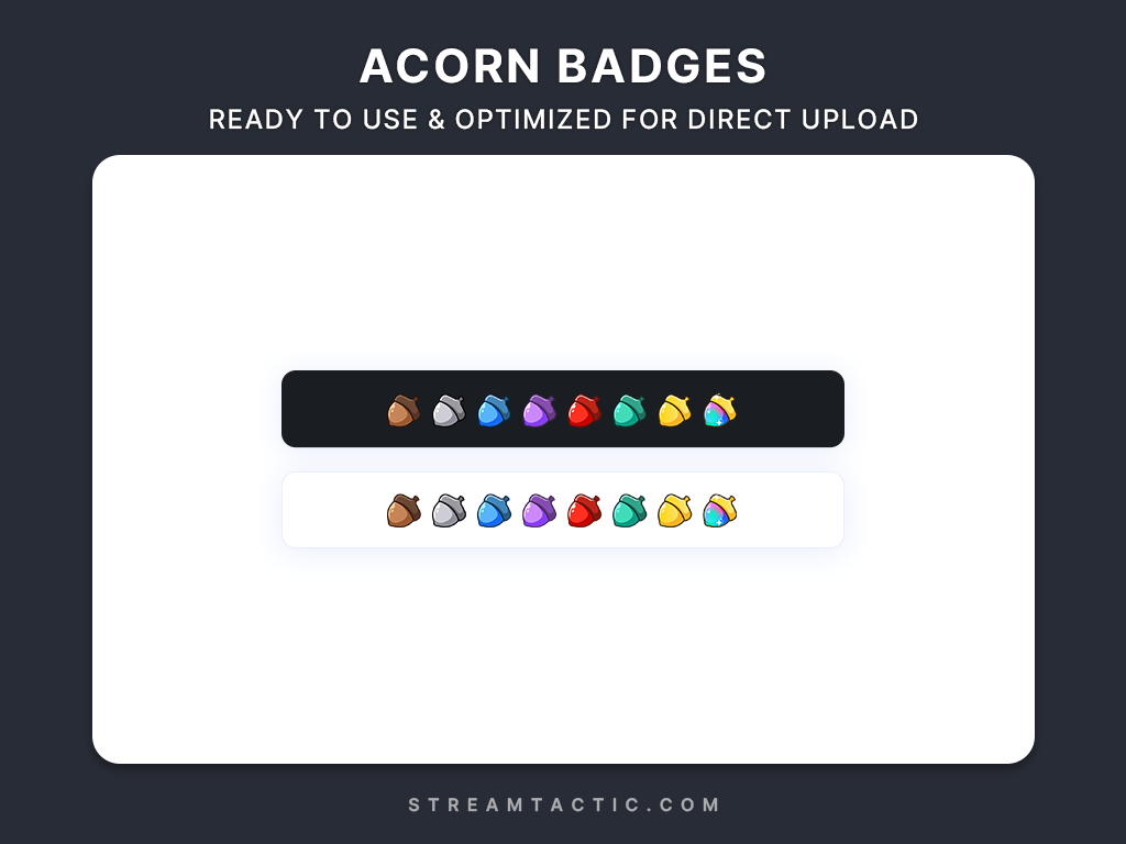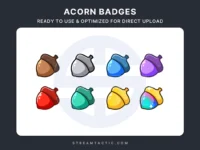 Show your community’s growth with these Acorn Sub Badges, a charming, nature-inspired set perfect for cozy or adventure-themed streams.