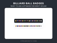 Introducing the Billiard Ball Badges, a stunning collection designed to enhance your Twitch channel with the timeless elegance of billiards.